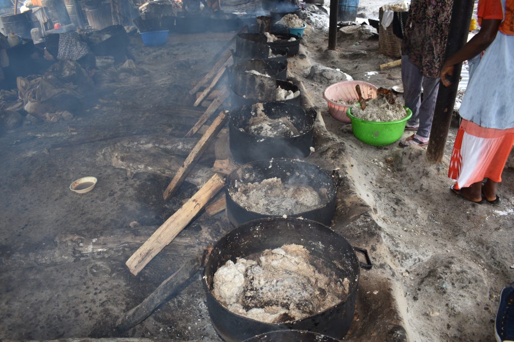 The manufacturing process is tedious back-breaking work that takes a group of women about 25 hours to complete a batch. A couple of them wake up about 3 am on Monday to start the prep work and others join throughout the day to continue the process until it’s complete about 4 pm. The next day another group takes it to the market to sell, and some bring it all the way to Accra(3 hours away) to make sure they don’t have excess soap sitting around.