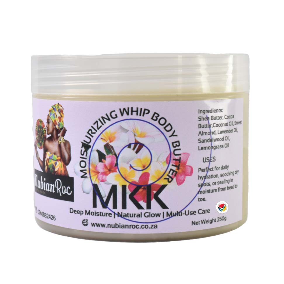 MKK Body Butter is a luxurious blend of nature’s most nourishing butters and calming floral oils. Crafted with unrefined Shea Butter, Cocoa Butter, and two beautifully infused coconut oils—Lavender and Frangipani—this indulgent formula melts effortlessly into your skin, delivering deep moisture and long-lasting softness.
