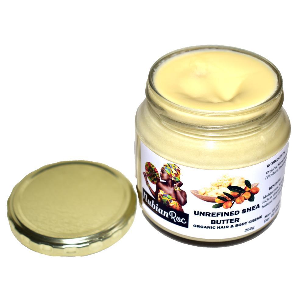 100% Raw & Unrefined Shea butter is a skin and hair superfood that comes from the seeds of the fruit of the Shea (Karite) tree and that is naturally rich in vitamins A, E and F. It offers UV protection (it is SPF ~6) and provides the skin and hair with essential fatty acids and the nutrients necessary for collagen production. Shea Butter has been used in Africa and many other locations for years to improve skin and hair.