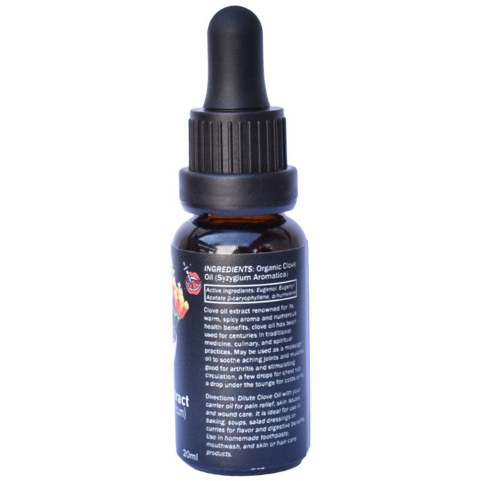 Clove oil therapeutic cold press extract is a natural analgesic, eases symptoms of toothache relief and gum inflammation. Clove oil also assists with reducing inflammation and swelling like athritis and muscle soreness without synthetic chemicals. Can also be used as mouthwash and toothache relief.